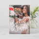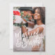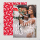 This design features a full bleed photo with a modern brushed font reading "Married & Bright", perfect for couples celebrating their first christmas as newlyweds! The back design features a bright red berry background with holiday branches. Background colour can be changed by clicking on the customize button.