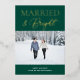 Married Bright Green Gold Script Modern Photo Christmas Script Real Foil Holiday Card. Send Holiday Greetings with photos to your loved ones with this festive and Modern Foil Holiday Card. All the texts are pre-arranged for you to personalize easily and quickly with your own details. Happy Holidays!
