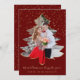 This elegant holiday card features your favorite photo in a Christmas tree frame outlined in gold glitter. Background is red with gold snowflakes. Customizable text "Married Christmas & Happy New Year!" and your family name underneath.