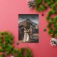 An elegant Christmas design with "Married & Merry" in a calligraphy script with gold foil. The thin frame and couple's name is also in gold foil. (There is a choice of different colour foils.) The backside has a placeholder for another image and a customized message, the light gold on love is a colour only (there is no foil on the backside).