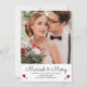 Married & Merry Christmas Wedding Photo Heart Christmas Cards features an elegant black hand written script "Married & Merry" on a white background. Accented with love hearts. Personalized with your own message and your names by editing the text in the text box provided. Add your favourite photo. View other items in this collection designed by Evco Holidays https://www.zazzle.com/store/evcoholidays