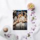 An elegant Christmas design with "Married & Merry" in a calligraphy script with gold foil. The thin frame and couple's name is also in gold foil. (There is a choice of different colour foils.) The backside has a placeholder for another image and a customized message, the light gold on love is a colour only (there is no foil on the backside).