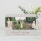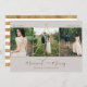 Elegant and beautiful Christmas holiday card for newlyweds. Our design featuring our hand-drawn swirling faux gold Christmas tree design with star topper. The Christmas tree beautifully frames the middle photo with "married & merry" displayed in elegant script typography. Personalize with three photos, greeting, name, and year. The reverse side features an elegant faux gold stripe design that pairs beautifully with the front gold elements. Artwork by Moodthology Papery.