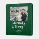 Married Merry Newlyweds 1st Christmas Green Photo Ceramic Ornament