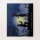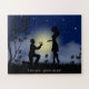 A couple is in silhouette against the night sky with a shining moon behind them and stars. The text, I love you - please say yes!, is easily personalized if you wish to change the wording.