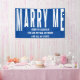 Proposal Banner lettered with "marry me?" and your personalized text such as "[name] you are my sun, my moon and all my stars". This bold design has trendy oversized typography set around your custom wording. This banner has a colour palette of blue and white, which you are welcome to change (click "customize further") or message me for assistance.