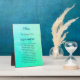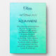 Jolie carte personnalisée Mars Birthstone Aquamarine thème Table top Plaque avec chevalet cadeau. Poem décrit les propriétés métaphysiques du cristal Aquamarine.