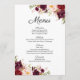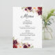 Our marsala, burgundy, and wine floral wedding menu cards have wording that is completely customizable. Use Zazzle's "Personalize this template" tool to enter your wedding ceremony information. If you need to change the placement of the text boxes, font colour or size just click on the "Click to customize further" button to change those things. Be sure to check out our large selection of coordinating items by browsing the Marsala Floral Wedding collection!