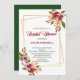 C'est une jolie invitation à la douche nuptiale fleurie pour toute saison, y compris l'hiver. Il est doté d'un élégant cadre double offset or, avec des bouquetiers rose marsala rouge et bleu ornés d'or en haut à droite et en bas à gauche. Votre texte personnalisé est en or foncé au centre. Le dos de l'invitation est solide assorti vert foncé.Beau! Assurez-vous de voir les produits correspondants dans notre magasin.