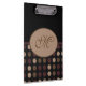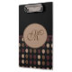 This monogram clipboard has an elegant marsala, brown, and black polka dot design. Add your text in the space provided. To add more detailed customization, click the "customize it" button, and change text, font, font size, colour and placement.