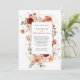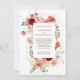 Warm and wistful, this wedding invitation blends soft peach florals with earthy terracotta accents to create a palette that’s equal parts romantic and grounded. A delicate gold and botanical frame surrounds your event details and adds a quiet sophistication. The mix of classic serif and flowing script fonts lends elegance and heart, making it perfect for couples who love a refined look with organic warmth—ideal for garden soirées, rustic ceremonies, or any celebration infused with nature’s gentle hues. Easy to personalize with your own information.