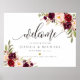 Vous recherchez le signe de bienvenue mariage parfait pour ajouter une touche d'élégance et de charme à votre journée spéciale? Ne cherchez pas plus loin que notre Affiche de bienvenue de Mariage de calligraphie florale de Bourgogne, disponible sur Zazzle! Doté d'étonnants détails floraux dans les tons bordeaux et roux, ce panneau d'inspiration rustique s'ajoute parfaitement à tous les mariage d'inspiration boho ou vintage. Et grâce à notre outil de personnalisation facile à utiliser, vous pouvez facilement personnaliser votre signe avec vos noms et votre date de mariage. Il vous suffit de modifier votre texte directement sur Zazzle, de prévisualiser votre design et de passer votre commande - c'est si simple ! Et grâce à nos options d'impression et d'expédition de haute qualité, vous pouvez être sûr que votre panneau arrivera en parfait état et prêt à être affiché à votre mariage. Alors pourquoi attendre ? Commandez dès aujourd'hui votre Affiche de bienvenue Mariage de calligraphie florale de Bourgogne et ajoutez une touche de charme personnalisé à votre journée spéciale ! Bourgogne Floral calligraphie Mariage Affiche de bienvenue, marsala floral, signe d'accueil, signe mariage d'accueil, signe d'accueil mariage, signe imprimé, signe modèle, signe d'événement, signe de porche, élégant signe de mariage, mariages chic, mariage d'or, coeur d'or, calligraphie signe d'accueil, calligraphie mariage signe d'accueil