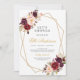Marsala floral and gold geometric blush pink bridal shower invitations. Blush Roses ©