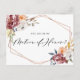 Serez-vous mon maître d'honneur ? Demandez à votre famille et à vos amis de faire partie de votre mariage avec cette carte de proposition de mariage personnalisable. Il présente l'aquarelle illustration de marsala, fleurs orange et blanches avec cadre géométrique or rose. Cette carte de propositions florales est parfaite pour les mariages de l'automne ou de l'automne. Des éléments correspondants sont disponibles.