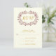 Marsala foliage wreath frame wedding RSVP response or reply card featuring a marsala colour frame made of leaves and text in gold on ivory. This modern stylish and elegant monogrammed template is a totally customizable design part of a wedding set perfect for your spring, summer and fall or autumn wedding.