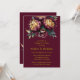 A breathtaking arrangement of deep, velvety red peonies, their lush petals creating a rich and dramatic display, accented with delicate gold leaves and shimmering tendrils. Among the blooms, two intertwined gold wedding rings are elegantly nestled, symbolizing eternal love and unity. The bouquet’s natural stems are left bare, showcasing an organic yet sophisticated look. This combination of dark red and gold exudes timeless romance and opulence, making it a stunning choice for a wedding centerpiece or bouquet. Matching invitations and wedding party supplies are available in this collection suite.