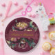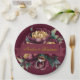 Marsala Red and Gold Peony with Wedding Rings Paper Plate