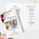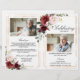 Funeral memorial program featuring on the front a photo of the deceased, thier name, dates, the memorial venue, date of the event, and elegant gold frame with watercolor marsala and blush roses. On the inside is an obituary, and order of service; and on the back another photo, a thank you note and the second venue for after the funeral.