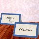 Create your own Marseille Bleu folded wedding place cards with or without lines for the name and table number and custom text on the back. Easy to personalize, these custom wedding escort cards are a bright shade of navy blue with a block of soft ecru on the front with optional lines for guest's names and table numbers. The back of each personalized wedding place card has white text where you can add the names of the bride and groom and the wedding date or a simple thank you message.