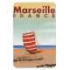 Marseille France vintage travel poster. Retro French holiday vacation poster art.