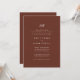 This wedding invitation exudes classic elegance with its subtle classic calligraphy monogram. The monogram, featuring the initials of the happy couple, is elegantly displayed on the front of the invitation. The invitation itself is crafted from high-quality cardstock and features a timeless font and simple, yet sophisticated design. The traditional typography adds a touch of elegance and adds to the overall classic feel of the invitation.