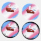 A background in the colours of the Transgender Flag, light blue, light pink, white, light pink, and light blue sketched diagonally from bottom left to top right. In the foreground, a red brick engraved M P. J, the initials of Trans woman and LGBTQ rights activist Marsha P. Johnson who is thought to have thrown the first brick of the stonewall protests. The image symbolizes the integral and inextricable part that Trans people have played in the fight for equal rights. in the bottom right corner is the signature of the artist, Alex Leslie