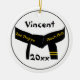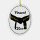 Customize the unique Martial Arts Second Degree Black Belt Round Ornament with the name of your martial artist and current year. Create a personalized black belt gift to commemorate a 2nd Dan black belt promotion test or exam, birthday or holiday. This one of a kind custom martial arts sports ornament features a digitally enhanced photograph of a martial arts black belt with two gold bars on the front with the words Black Belt Club on the back. Suitable for all martial arts including karate, taekwondo, kung fu and judo.