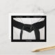 All martial artists must possess dedication, desire and determination to reach the esteemed rank of black belt. Acknowledge your martial artists hard work and achievement with this Martial Arts Black Belt Congratulations Postcard. Suitable for karate, taekwondo, kung fu or judo. Image is a photograph of a black belt tied around a white uniform. Instructors buy in bulk for the students in your gym or school and save money.