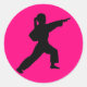 Une silhouette noire féminine des arts martiaux sur des autocollants rose chaud.