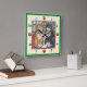 Cats Bud & Tony share a giant pink martini with bar drinks in the background. This whimsical illustration is bordered with a neutral butter yellow & green edged border. North/South and East/West time indicators are their trademark paw prints in red, while all others are blue easy to read numbers. A purrfectly fun wall piece for a kitchen or bar combination and designed to appeal to all cat lovers. Illustration has a subtle paw print painted in the design, see if you can find it.