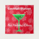 Your guests won't have any problem finding the bar with this tapestry hanging behind it. A bright red background with snowflakes and a green martini in the center. Text says Cocktail Station at the top and For Holiday Cheer below. Text is fully customizable.