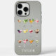 This case is so fun! It has 12 different types of martinis in watercolor on a silver metal background and your name in a modern CAP font in white. You gotta get it!!!