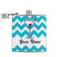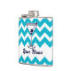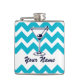 This trendy and stylish hip flask features a icon of a martini in a glass with an olive!  The background features a repeating teal and white zig-zag chevron pattern with a white area featuring your own name in a blue script font!  Try adding your name or short message in the personalize it section!  If you want to change the colour of the light blue chevron pattern, click on "Customize it!" to play with the background colour options!