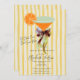 Watercolor hand-drawn martini with bow on a yellow striped background. This elegant design features a sophisticated Martini glass illustration, adding a touch of luxury to your event invitations. Impress your guests with this chic and timeless bridal shower, setting the tone for a glamorous celebration to come.