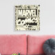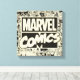 This retro Marvel Comics pattern features the vintage Marvel Comics logo on top of various black and white comic book pages, featuring Captain America, Spider-Man, Iron Man, Daredevil, Luke Cage, and Iron Fist.