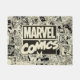 This retro Marvel Comics pattern features the vintage Marvel Comics logo on top of various black and white comic book pages, featuring Captain America, Spider-Man, Iron Man, Daredevil, Luke Cage, and Iron Fist.