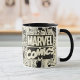 This retro Marvel Comics pattern features the vintage Marvel Comics logo on top of various black and white comic book pages, featuring Captain America, Spider-Man, Iron Man, Daredevil, Luke Cage, and Iron Fist.