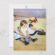Les enfants Mary Cassatt qui jouent sur les invitations à la plage. Peinture à l'huile sur toile de 1884. L'artiste américaine Mary Cassatt était une grande peintre et impressionniste. Les enfants qui jouent sur la plage représentent deux petites filles mignonnes qui jouent dans le sable sur la plage avec des voiliers qui naviguent sur l'eau dans le arrière - plan. Les deux filles portent de jolies robes de jeu et des chaussures noires. Une petite fille tient une pelle et bourre tandis que l'autre porte un petit casquette de soleil avec un ruban rouge. Un joli cadeau pour les fans de Mary Cassatt, de peintures sur la plage, d'impressionnisme et d'art d'été.