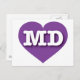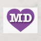 This postcard features a vibrant purple heart containing the bold, white, upper case letters MD, the official abbreviation of Maryland, the old line state. The reverse side of the postcard is blank, awaiting your customized text or handwritten sentiments.