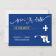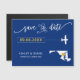 You chose a special place for your wedding. Now it's time to celebrate it with this keepsake save the date magnet card, featuring a silhouette map and a tiny plane headed to your destination. To move the heart to the place of your wedding, click personalize and then "customize further."