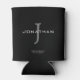Masculine Black and White Initial + Name Monogram Can Cooler
