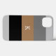 Masculine iPhone case done in bold colour block pattern of greys, black and tan. Personalize the one letter monogram, for yourself or as a great gift idea for him.