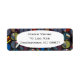 These return address labels have a mid-century modern design of oval halves, some solid and some striped, in masculine colors on a field of dark gray.