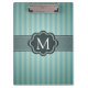 Masculine Teal Blue Stripes Custom Monogram Clipboard