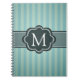 Masculine Teal Blue Stripes Custom Monogram Notebook