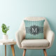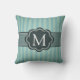 Masculine Teal Blue Stripes Custom Monogram Throw Pillow