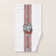 It was advertised as NAVY blue and the color sent was greenish blue. I am disappointed in this product. Quality and printing are great as are all my other orders. As you can see in picture the tea towel on right is perfect, hand towel not so much! Print was awesome and just as ordered