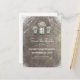 Baby's breath, string lights, and rustic mason jar save the date postcards