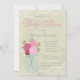 Adorable mason jar with pink flowers ivory lace baby shower invitation. This sweet mason jar baby shower invitation is easily customized for your event by adding your details in the font style and colour, and wording of your choice.