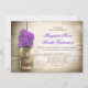 beautiful rustic wedding invitations with distressed wood background and mason jar with purple colour flowers . I suggest a beautiful linen texture paper for this design.
